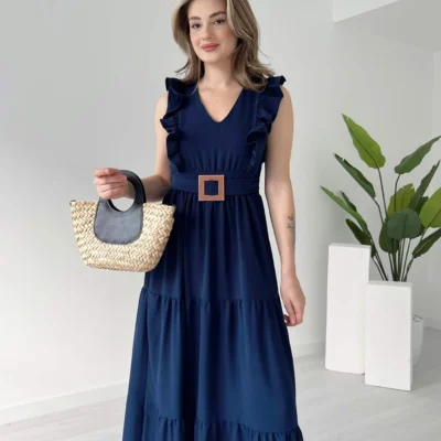 Vibrant Royal Blue Ruffle Maxi Dress