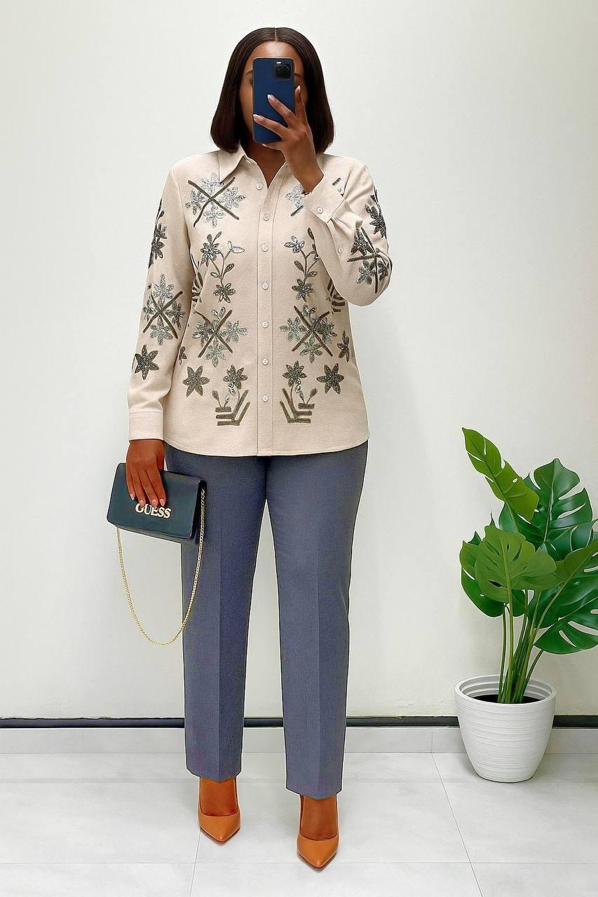 Be the first to review “Chic Floral Embellished Shirt & Tailored Pants Ensemble” Cancel reply