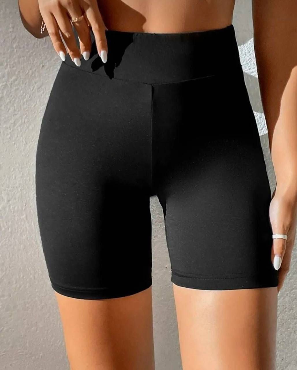 These classic black high-waisted biker shorts are the ultimate blend of comfort, stretch, and style. Designed to hug your curves flawlessly, they feature a wide elastic waistband that offers a secure and flattering fit, enhancing your natural shape while providing tummy control.