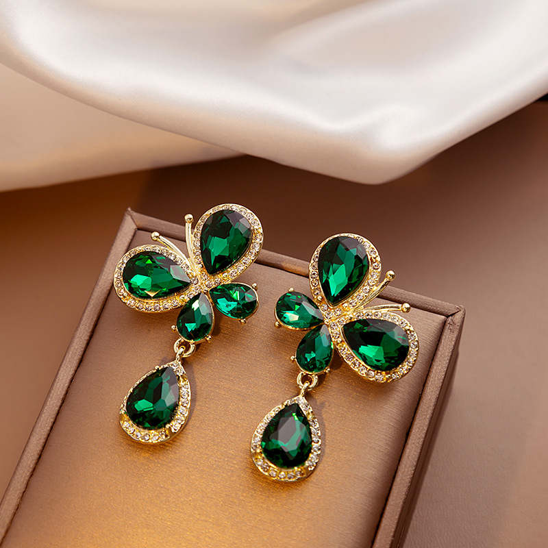 Add a touch of luxury to your look with these stunning butterfly-inspired statement earrings. Crafted with brilliant faceted black gemstones, each piece forms a graceful butterfly silhouette, beautifully outlined with sparkling crystal accents. A teardrop gem dangles below, adding elegant movement and extra shimmer.