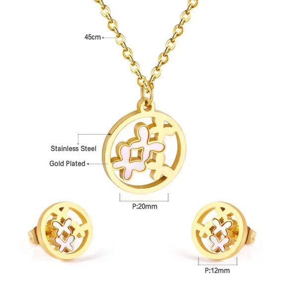 Elegant Round Emblem Stainless Steel Jewelry Set – Non-Tarnish | Waterproof