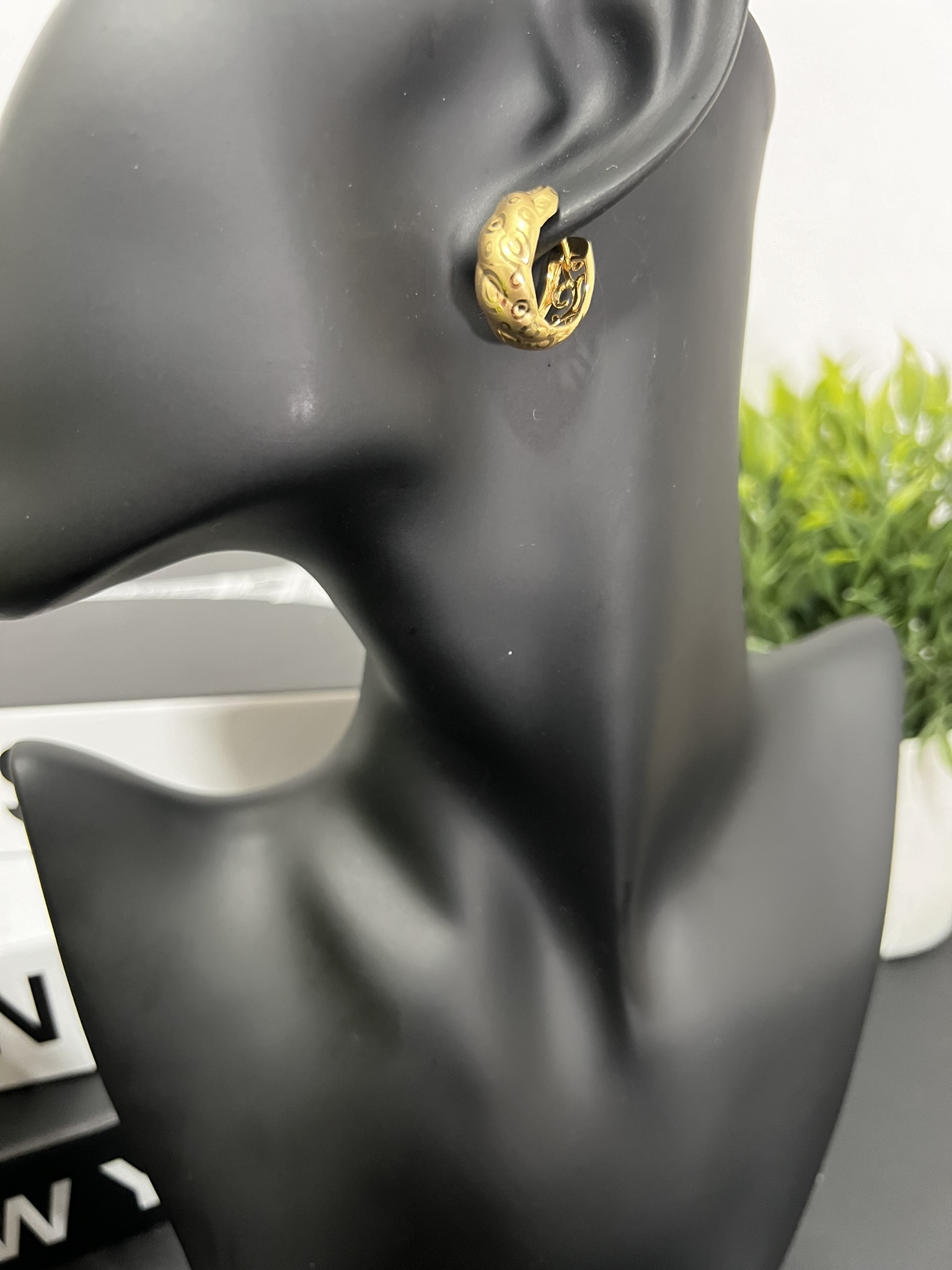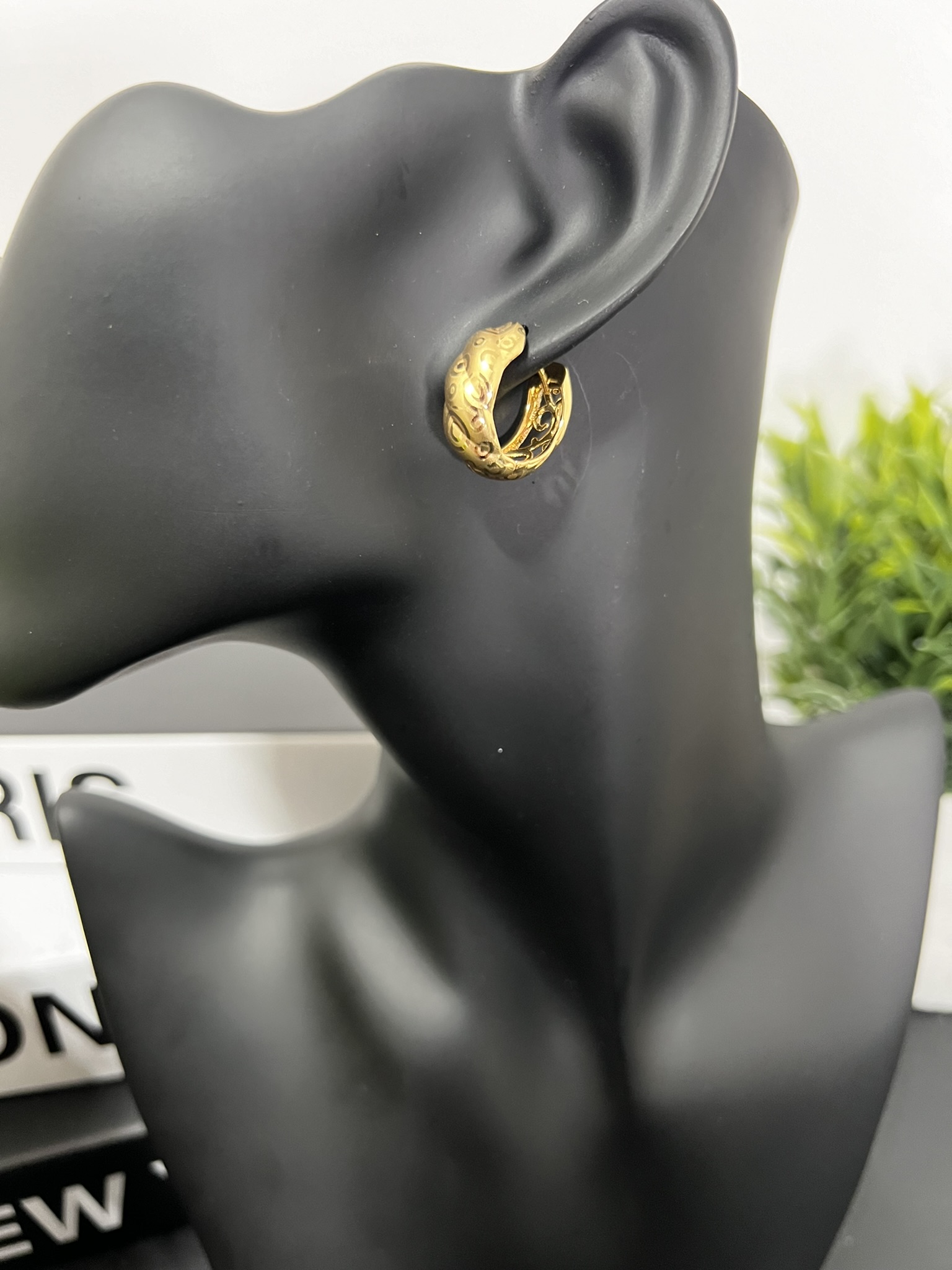 These stylish gold hoop earrings feature a beautifully textured, organic pattern that adds personality and flair to any look. Crafted from premium stainless steel, they offer a luxurious gold finish without the worry of fading or tarnishing.