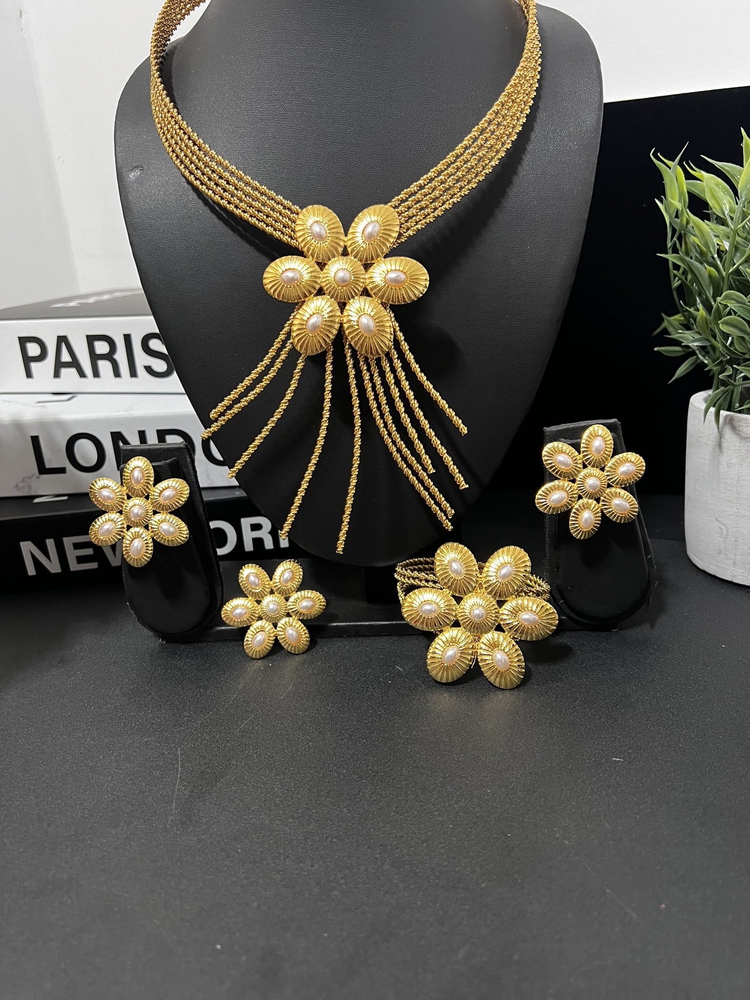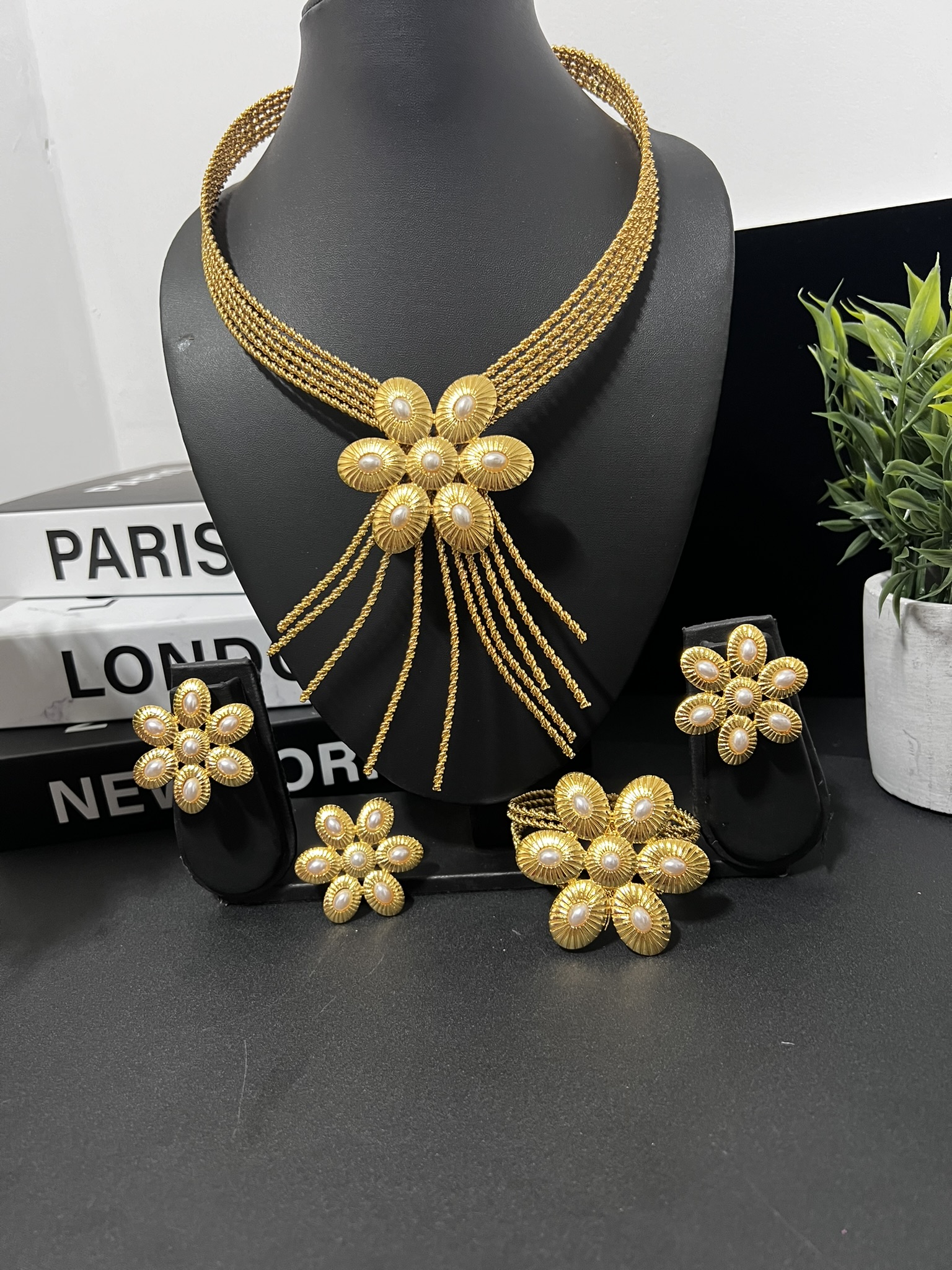 Make a grand statement with this elegant, flower-inspired jewelry set crafted from premium non-tarnish stainless steel. Designed for women who love bold glamour with timeless sophistication, this set radiates beauty from every angle.