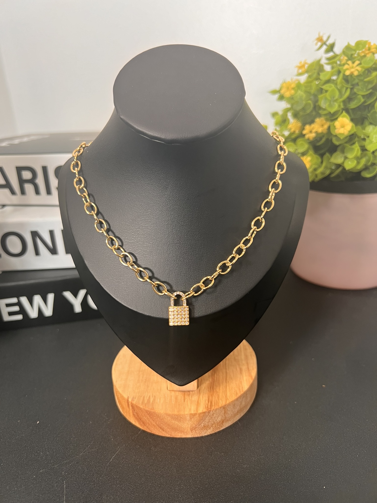 Non-Tarnish Stainless Steel Lock Necklace – Gold Plated