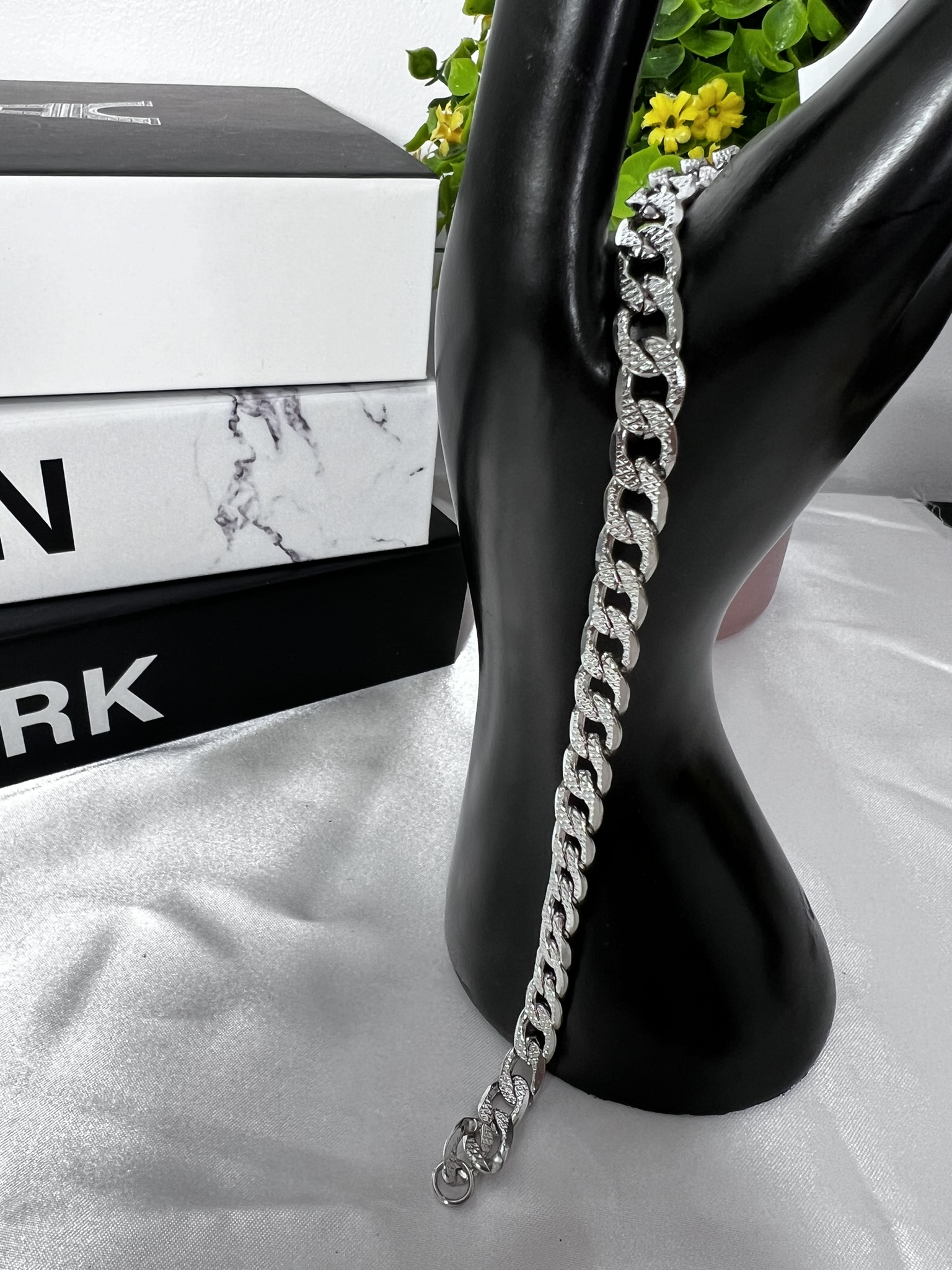 Turn up the shine with this stainless steel non-tarnish Cuban link bracelet, designed for those who love bold, luxurious style. Each link is encrusted with sparkling crystals, creating a flawless balance of strength and sophistication. Its silver-tone finish catches light beautifully, making it a standout piece for any occasion.