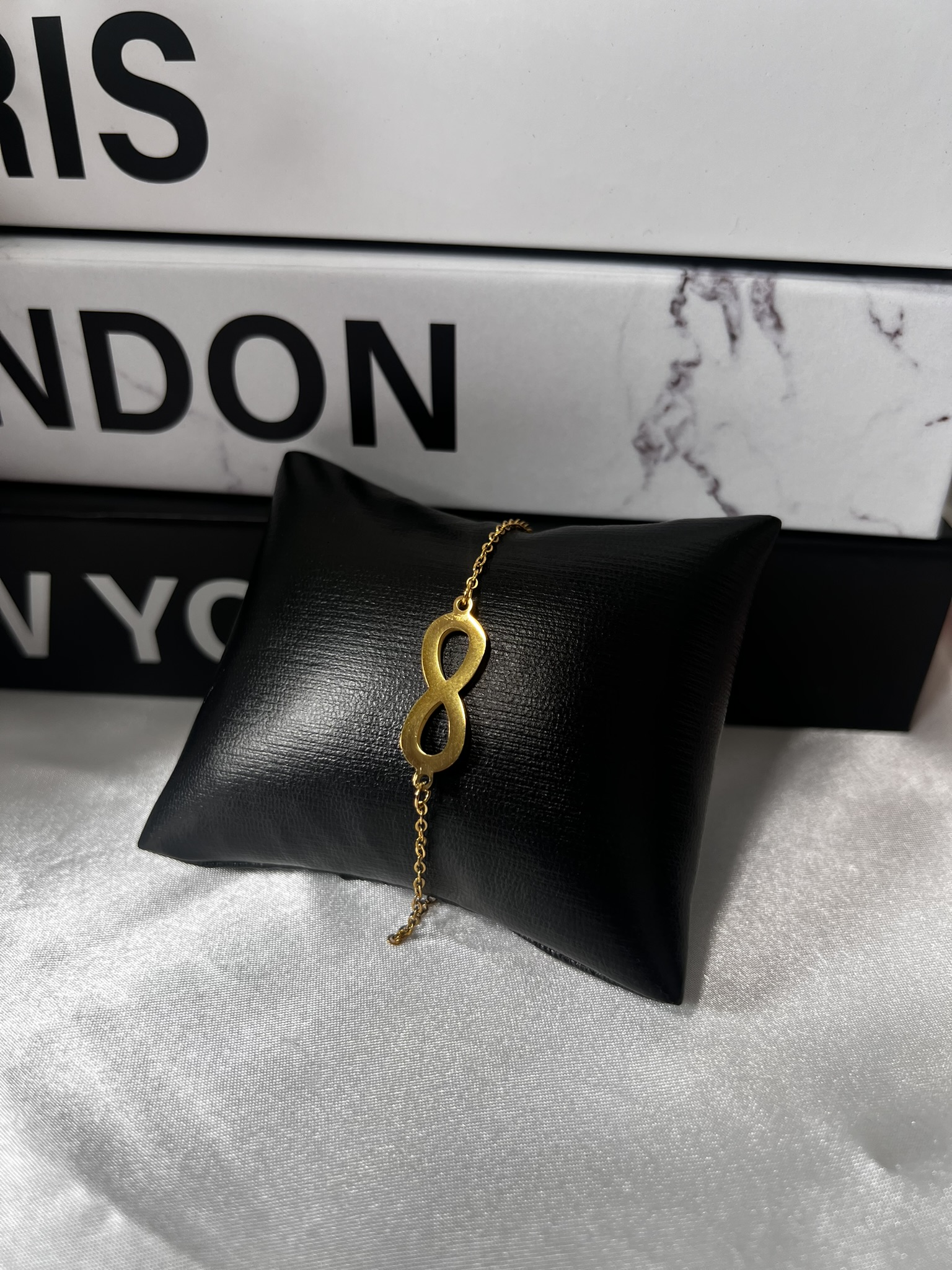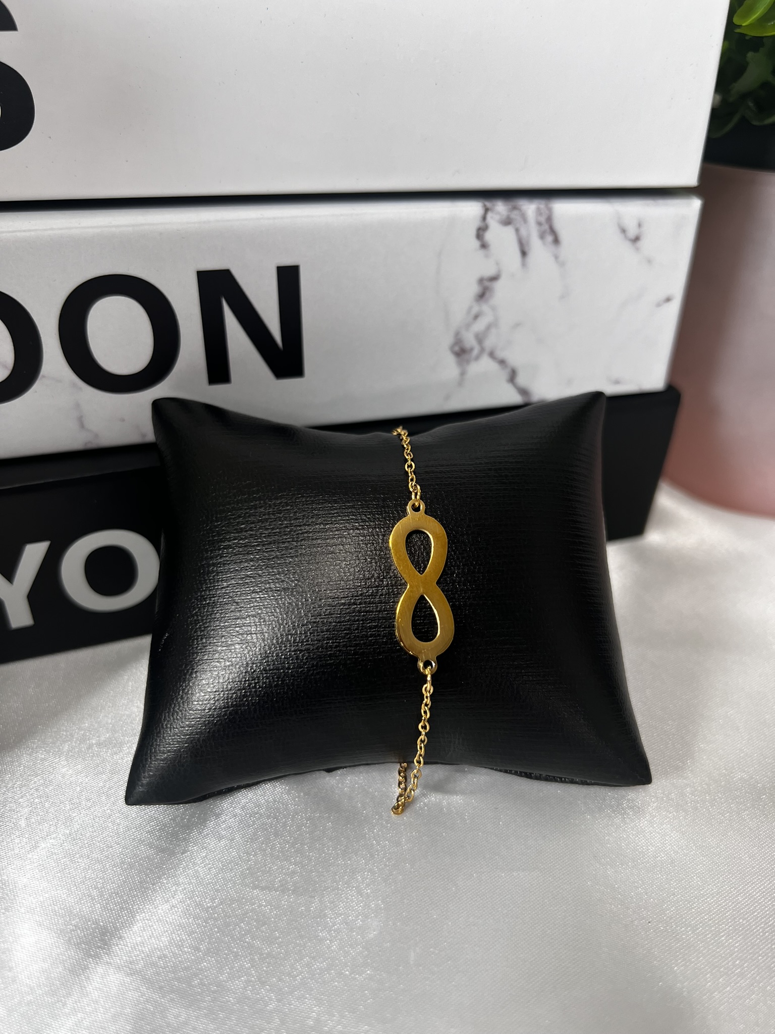 Embrace timeless elegance with this gold-tone stainless steel bracelet, featuring a sleek infinity symbol centerpiece that represents everlasting love, balance, and strength. Its minimalist chain design adds a touch of sophistication, making it perfect for daily wear or as a meaningful gift.