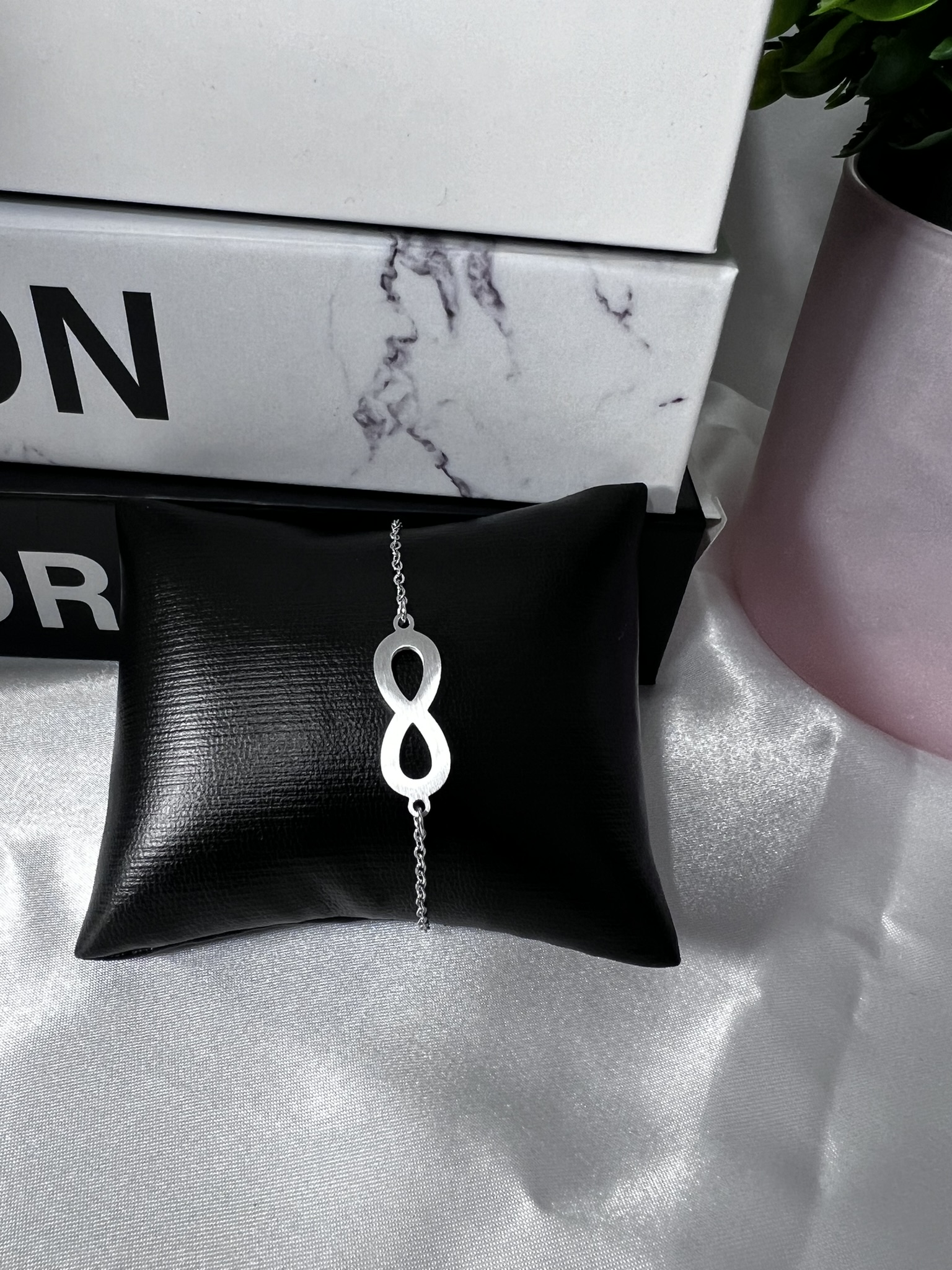 Design: Infinity symbol centerpiece on a delicate chain